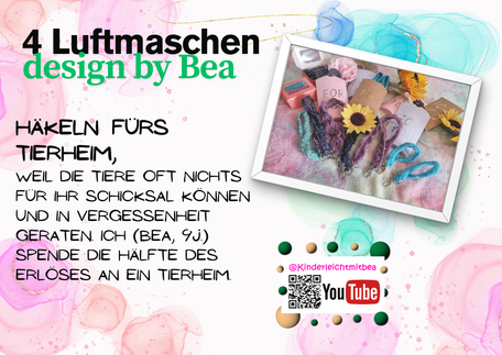 Ich bin die Bea und zu Beginn des YouTube Kanals 2024 war ich 8 Jahre - und möchte mit euch -von einem Kind für Kinder und natürlich auch Erwachsenen- kinderleichte Handgemachte schöne Dinge machen. Vielleicht auch nur ein paar Ideen geben. Wichtig ist mir, das man mit dem arbeiten kann, was man meistens sowieso zu Hause hat oder günstig besorgen kann.