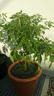 Die Cayenne Chili ist wohl eine der bekanntesten aus Mexico stammenden Chilis und gehört zu den Annuum Sorten. Sie hat ein typisch scharfes Aroma. Deklariert wird sie im Schärfebereich mit 8 und 20.000 - 50.000 SHU. Sie wird ca. 60 - 80 cm groß. Ihre erst grünen Früchte reifen innerhalb von 90 Tagen nach Rot ab.