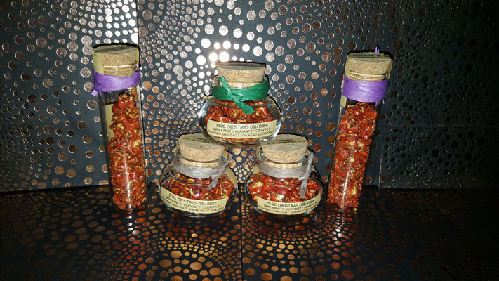Verarbeitet habe ich sie zu einem Flockenmix mit anderen getrockneten Chilis.