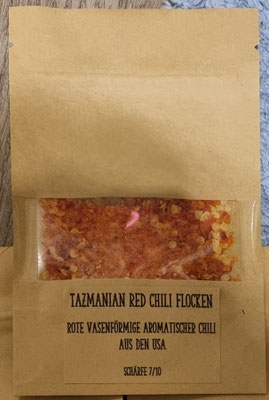Die Chilis habe ich getrocknet und zu Flocken verarbeitet. Außerdem habe ich sie mit dem milden zart Rosafarbenen Murry River Salz aus Australien gemischt.