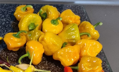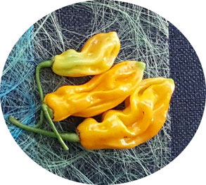 Eine Chinense Sorte aus Jamaika. Ein sehr scharfe Chili mit 8 - 9 und 30.000 - 100.000 SHU gepaart mit einem intensiv Fruchtigen Aroma, das an eine Mischung aus Zitrone und Aprikose erinnert. Die Pflanze wird bis zu 90 cm groß. Mit einer recht langen Reifezeit von 110 Tagen reifen die Früchte von Grün nach Gelb ab.