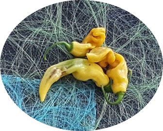 Diese aus Sardinien stammende Annuum Sorte hat eine mittlere Schärfe von 5 mit 2.500 - 5.000 SHU. Die Pflanze wird 60 cm groß und reift innerhalb von 80 Tagen von Grün nach Gelb/ Orange zu Rot ab.