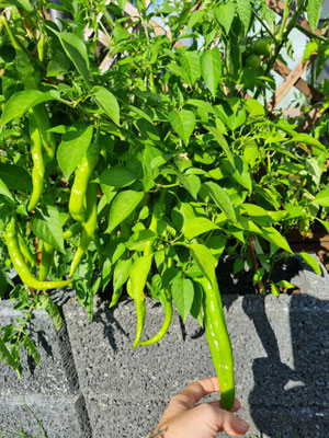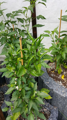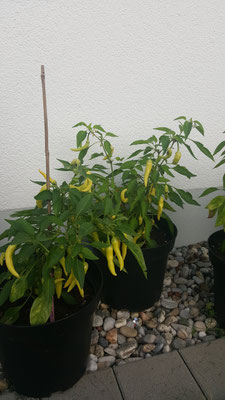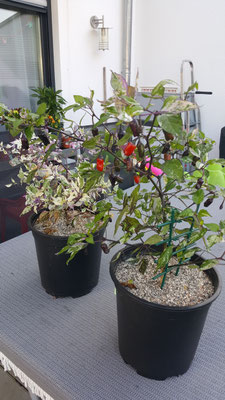 Da ich einen falschen Standort für diese Pflanzen gewählt hatte, sind sie recht geblieben und haben nicht allzu viele Chilis produziert um einiges ausprobieren zu können, sodass ich die wenigen trocknen und zu Flocken verarbeiten konnte.