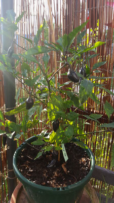 Die Czech Black ist eine außergewöhnlich schöne Chili mit lilafarbenen Blüten. Sie gehört der Gattung Annuum an und besitzt eine sehr milde Schärfe von 4 mit 1.000 - 2.500 SHU. Sie wird bis zu 75 cm groß und gilt mit einer Reifezeit von 65 Tagen als Frühreif. Ihre Früchte reifen von Grün über Schwarz zu einem dunklem Rot ab. Diese Sorte kommt aus Tschechien und ist süßlich im Aroma.