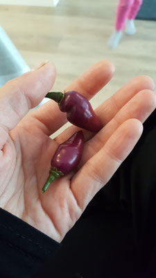 Eine wirklich tolle Chili mit Überraschungseffekt. Ich habe sie bei der Herstellung von Chili Zucker Drops, sowie Chili-Zucker und Chili Zitrus Salz mit hinzugenommen.