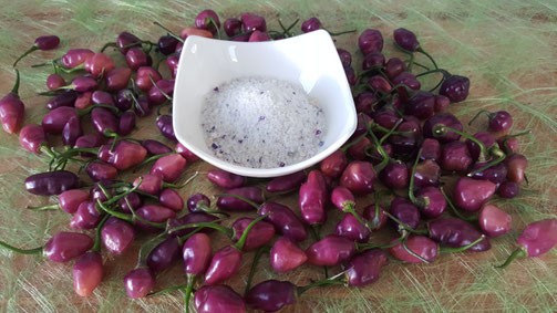 Ich bin ein Fan von dieser Chili, durch ihr dünnes Fruchtfleisch eignet sie sich optimal zum trocknen. Eine perfekte Kombination bildete sie mit dem milden Salinensalz aus dem kleinen Örtchen Einville in Frankreich.